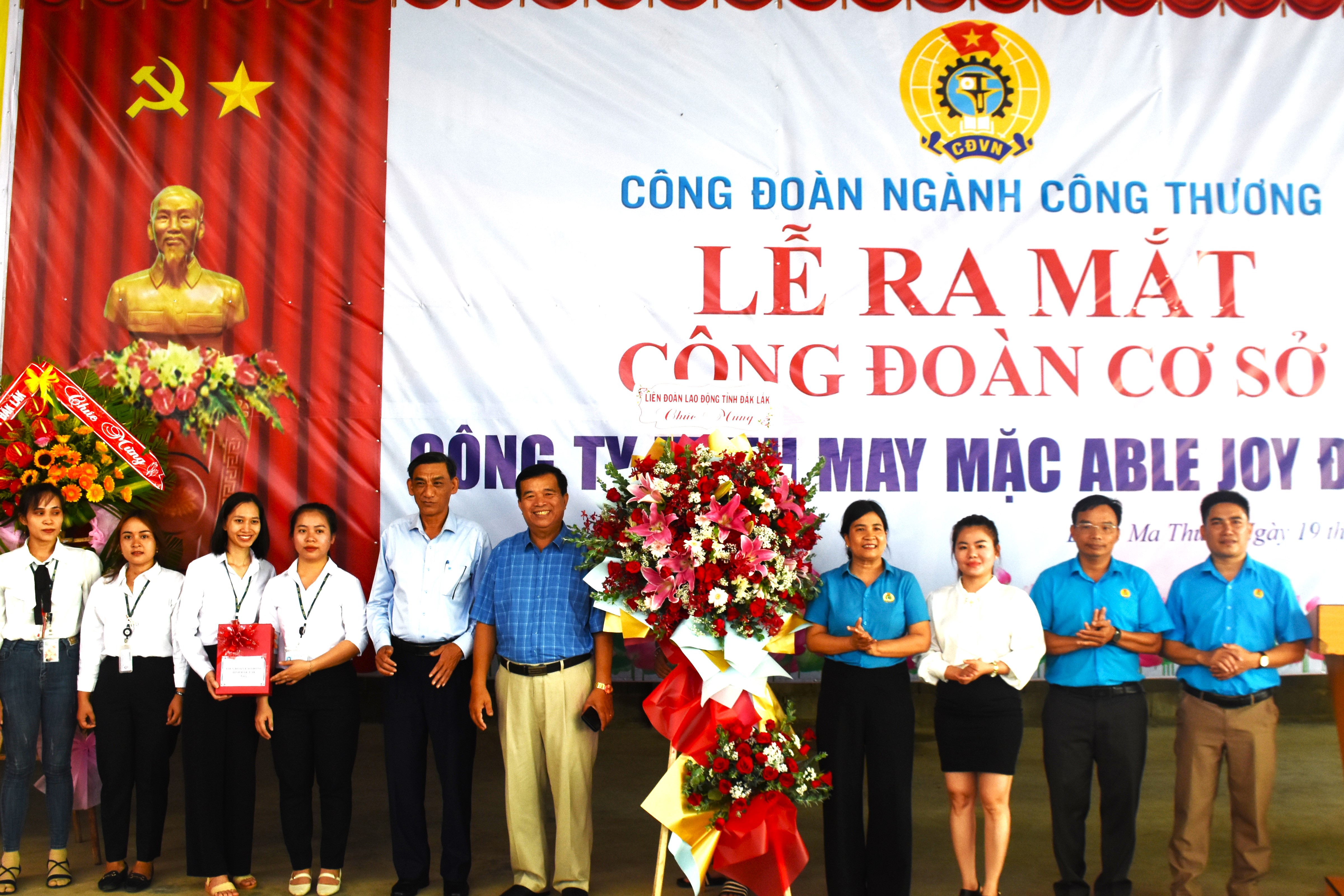 Tham dự buổi lễ có các đồng chí: Lê Nam Cao, Phó Ban Tổ chức Tỉnh ủy, đồng chí Nguyễn Thị Lý - Phó Chủ tịch Thường trực LĐLĐ tỉnh; Nguyễn Phú Lập, Phó Chủ tịch LĐLĐ tỉnh; Nguyễn Văn Nghiêm, Phó Giám đốc Sở Công Thương, Thường trực CĐ ngành Công thương cùng lãnh đạo Công ty và đông đảo đoàn viên, người lao động (NLĐ) Công TNHH May mặc Able Joy Đắk Lắk.