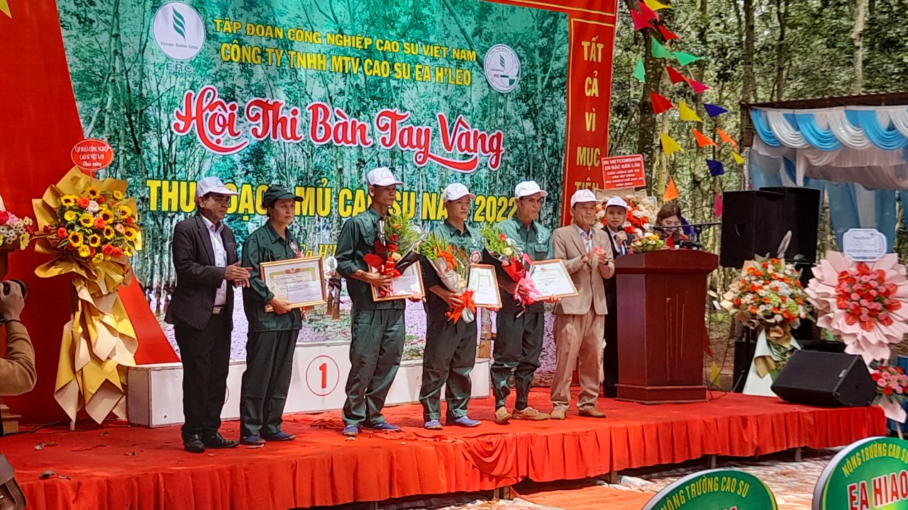 Trong 02 ngày 11 và 12 tháng 10, Công ty TNHH một thành viên cao su Ea H’Leo tổ chức hội thi “Bàn tay vàng thu hoạch mủ cao su năm 2022”. Về dự hội thi có các đồng chí: Trần Thanh Phụng - Phó tổng Giám đốc Tập đoàn công nghiệp cao su Việt Nam; Phan Mạnh Hùng – Chủ tịch công đoàn cao su Việt Nam; Nguyẽn Thị Lý, Phó Chủ tịch Thường trực LĐLĐ tỉnh, Nguyễn Văn Hà – Chủ tịch UBND huyện Ea H’Leo