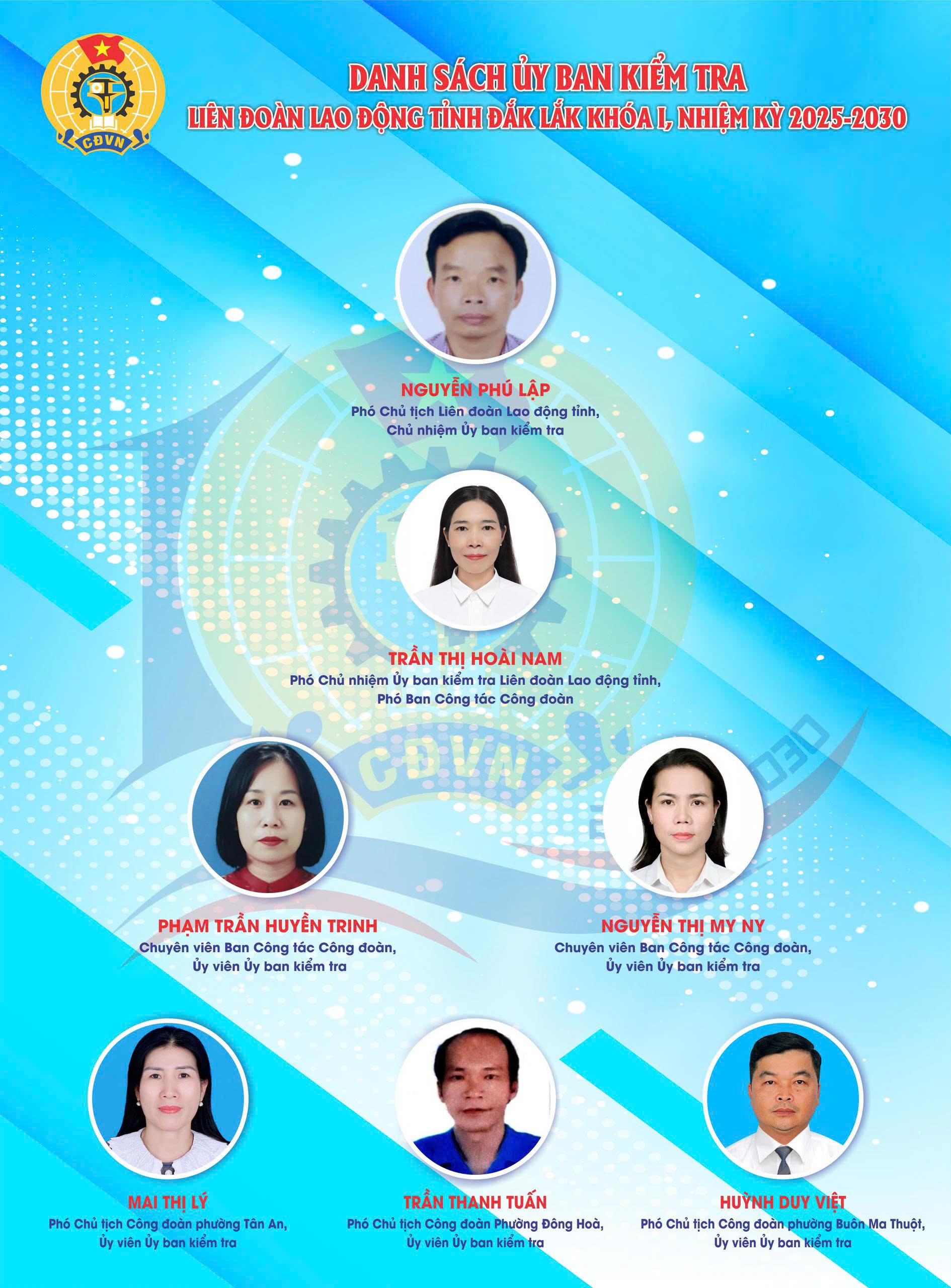 Danh sách Ban Chấp hành, Uỷ ban Kiểm tra Liên đoàn Lao động tỉnh Đắk Lắk Khoá I, nhiệm kỳ 2025-2030