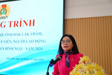 Đồng chí Nguyễn Thị Thu Nguyệt thay mặt đoàn công tác gửi lời chúc sức khỏe, bình an, hạnh phúc đến tập thể lãnh đạo và công nhân lao động nhân dịp Tết Nguyên đán Bính Ngọ 2026. Đồng chí ghi nhận, đánh giá cao những nỗ lực vượt khó của doanh nghiệp cũng như sự tích cực lao động của các đoàn viên trong năm 2025. đồng chí Nguyễn Thị Thu Nguyệt nhận định năm 2026 dù còn nhiều nhiệm vụ khó khăn phía trước liên quan đến đời sống người lao động và sự phát triển của địa phương, nhưng đồng chí tin tưởng và mong muốn tập thể đoàn viên, người lao động tiếp tục nỗ lực, phấn đấu hơn nữa để hoàn thành xuất sắc nhiệm vụ sản xuất, kinh doanh. Đồng chí gửi lời chúc đến các gia đình công nhân đón một mùa Xuân mới vui tươi, trọn vẹn, đầm ấm