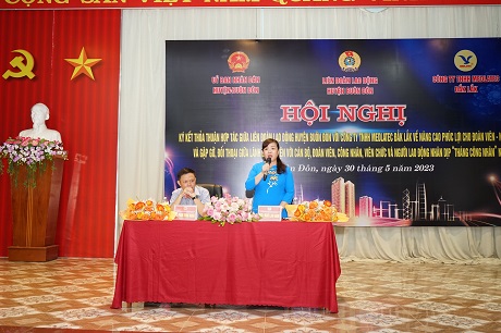 Tại hội nghị, Ban tổ chức hội nghị đã trao bảng tượng trưng hỗ trợ kinh phí xây dựng 2 căn nhà Mái ấm Công đoàn cho đoàn viên khó khăn về nhà ở; trao tặng 14 suất quà, mỗi suất trị giá 2 triệu đồng cho đoàn viên bị bệnh hiểm nghèo đau ốm dài ngày từ nguồn cứu trợ của UBMTTQVN huyện và 20 suất quà, trị giá 500 nghìn đồng/suất các đoàn viên có hoàn cảnh khó khăn từ nguồn kinh phí hoạt động của Liên đoàn Lao động huyện.