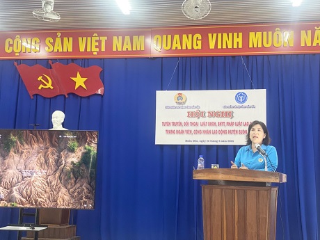 Sáng ngày 10/8/2023, Liên đoàn Lao động tỉnh phối hợp với Bảo hiểm xã hội tỉnh tổ chức Hội ghị tuyên truyền, đối thoại Luật BHXH, BHYT và Pháp luật lao động trong đoàn viên, công nhân lao động, cán bộ CĐCS năm 2023, tại LĐLĐ huyện Buôn Đôn. Về tham dự Hội nghị có đồng chí Nguyễn Thị Lý - Phó Chủ tịch Thường trực LĐLĐ tỉnh, đồng chí Ngô Lan Anh - Chủ tịch LĐLĐ huyện, đại diện BHXH huyện và các đồng chí lãnh đạo các phòng, ban Huyện ủy, cùng các đồng chí đại diện các Ban chuyên đề của LĐLĐ tỉnh và hơn 160 cán bộ, đoàn viên, công nhân lao động tham gia.