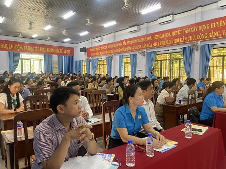 Tại Hội nghị, đại diện Thường trực LĐLĐ tỉnh, BHXH, BHYT đã giành nhiều thời gian trao đổi, trả lời và giải đáp một số nội dung cán bộ, đoàn viên, người lao động còn vướng mắc tại cơ sở như: Chính sách và các chế độ khi cán bộ, công chức, viên chức nghỉ hưu trước tuổi, chế độ thai sản của lao động nữ, thâm niên công tác của giáo viên về tuổi nghỉ hưu, về công tác thi đua, khen thưởng… Cũng trong chương trình hội nghị đã tổ chức trò chơi bốc thăm trả lời câu hỏi liên quan đến Bộ Luật lao động, BHXH, BHYT, BHTN…có thưởng nhằm tạo không khí vui tươi, phấn khởi thu hút đông đảo học viên tham gia.