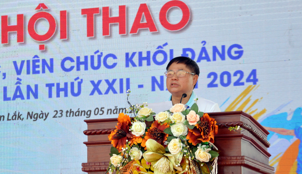 Sáng 23/5, tại huyện Lắk đã diễn ra Lễ khai mạc Hội thao công chức, viên chức khối Đảng tỉnh Đắk Lắk lần thứ XXII năm 2024. Dự lễ khai mạc có đồng chí Nguyễn Đình Trung - Bí thư Tỉnh ủy; đồng chí Phạm Minh Tấn - Phó Bí thư Thường trực Tỉnh ủy, Trưởng Ban tổ chức Hội thao; đại diện lãnh đạo các Ban xây dựng Đảng của Tỉnh ủy; lãnh đạo các Huyện ủy, Thị ủy, Thành ủy và Đảng ủy trực thuộc Tỉnh ủy cùng đông đảo các vận động viên, cổ động viên.