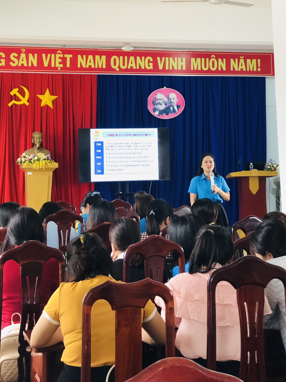 Tại hội nghị, đồng chí Lê Văn Hồng UVBTV, Trưởng ban Tuyên giáo Huyện ủy, Giám đốc Trung tâm Chính trị huyện đã truyền đạt chuyên đề về hoạt động Tôn giáo trong tình hình hiện nay; đồng chí Vũ Thị Mai Anh, HUV, Chủ tịch LĐLĐ huyện truyền đạt chuyên đề Phương pháp làm việc và kỹ năng hoạt động của Cán bộ công đoàn cơ sở ; đ/c Nguyễn Thị Vân, PCT LĐLĐ truyền đạt chuyên đề Nghiệp vụ công tác UBKT công đoàn cơ sở ; Đ/c Nguyễn Thị Phương Dung, triển khai các quy định và Hướng dẫn công tác thu, chi, quản lý tài chính của công đoàn cơ sở.
