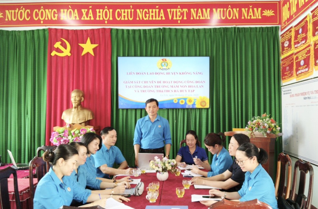 Thực hiện Chương trình kiểm tra, giám sát số 01/CTr- LĐLĐ, ngày 22/12/2022 của Liên đoàn Lao động huyện về Chương trình kiểm tra, giám sát năm 2023, đến nay, Liên đoàn Lao động huyện Krông Năng đã hoàn thành chỉ tiêu kiểm tra, giám sát năm 2023.