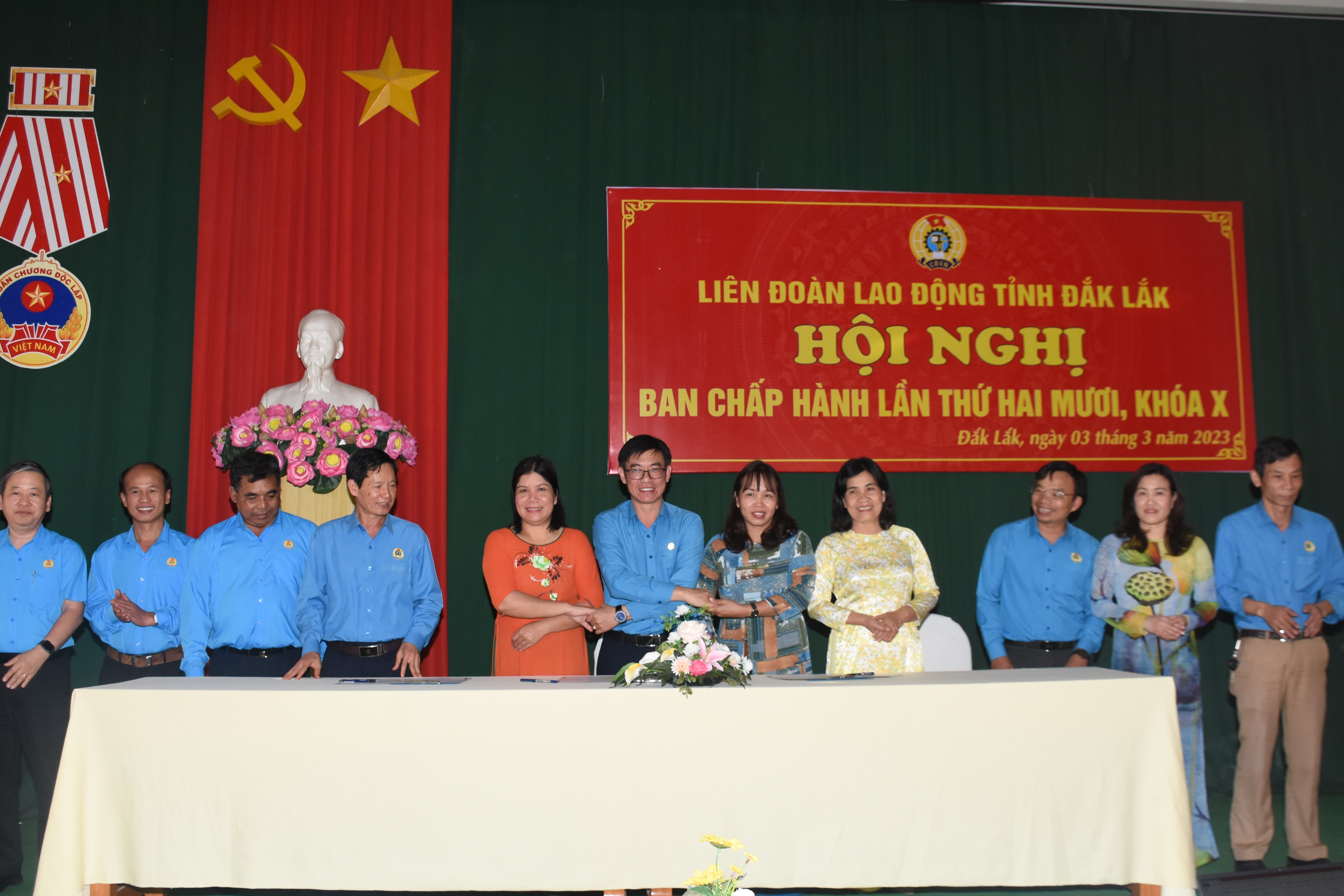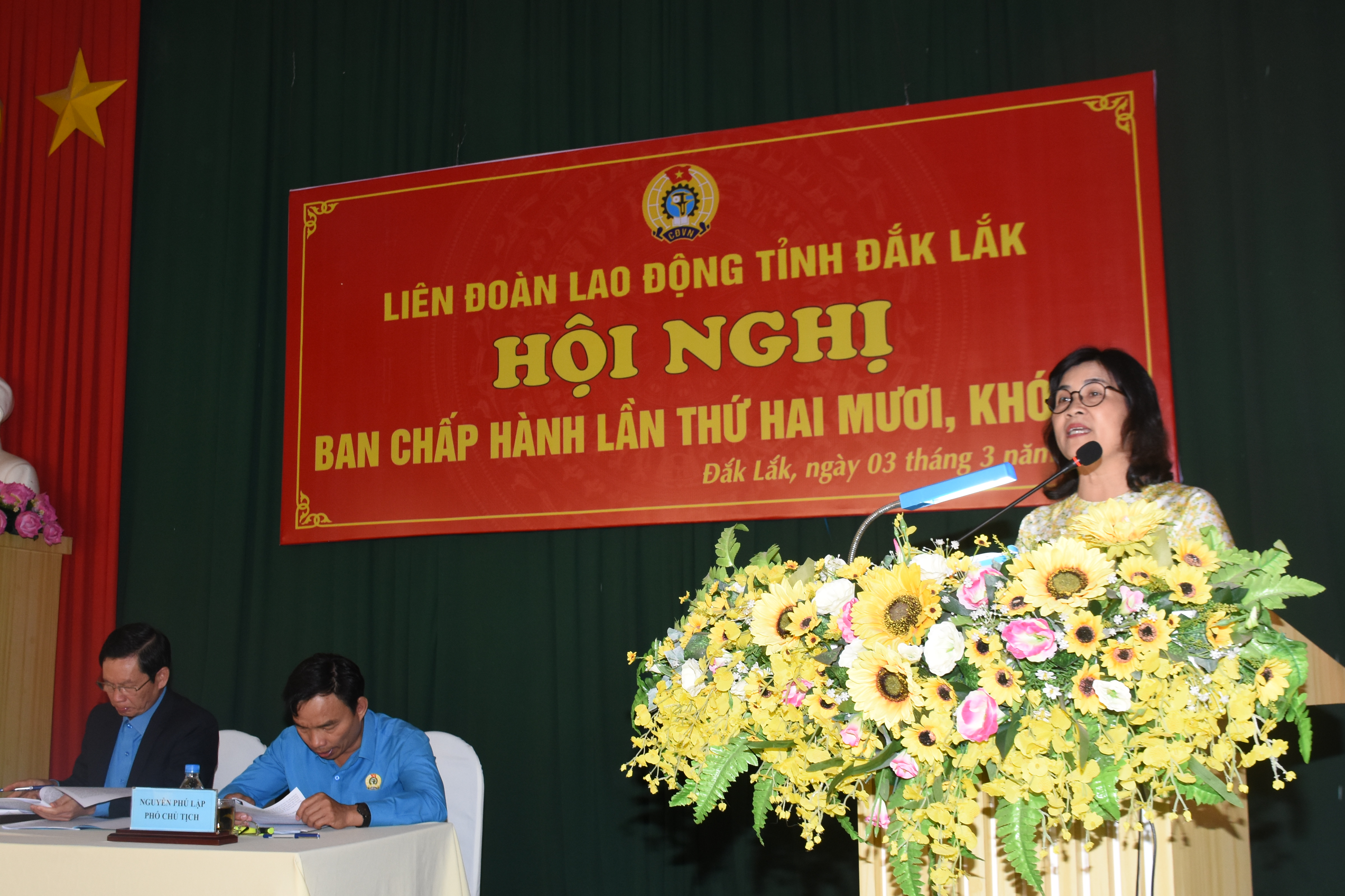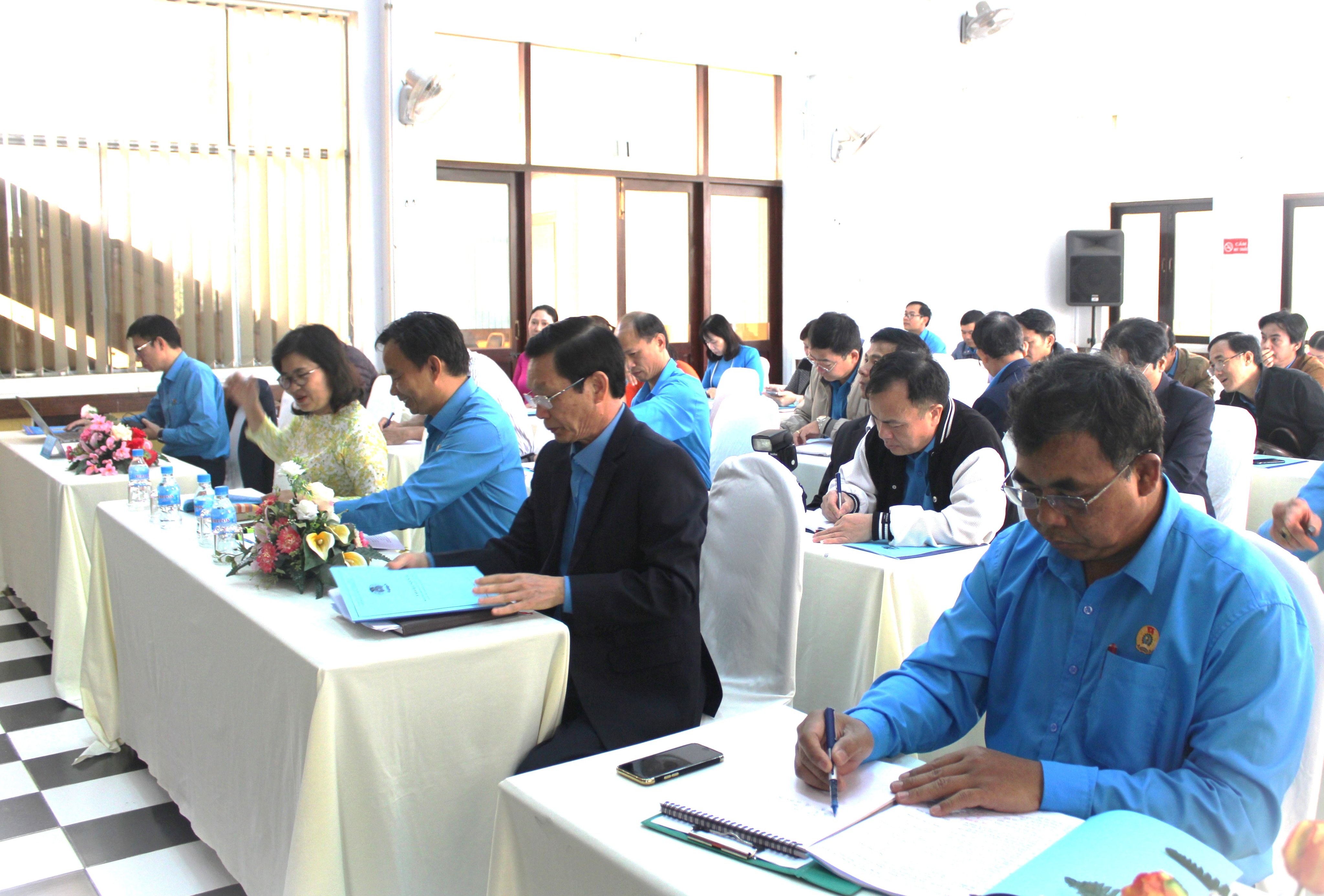 Dự và chỉ đạo Hội nghị có các đồng chí: Nguyễn Công Bảo, UV BCH Tổng LĐLĐ Việt Nam, Tỉnh ủy viên, Chủ tịch LĐLĐ tỉnh, Nguyễn Thị Lý, Phó Chủ tịch Thường trực LĐLĐ tỉnh, Y Jone Ktull, Nguyễn Phú Lập, Phó Chủ tịch LĐLĐ tỉnh, có các đ/c UV BCH, Chủ tịch LĐLĐ các huyện, thị xã, thành phố, công đoàn ngành địa phương.