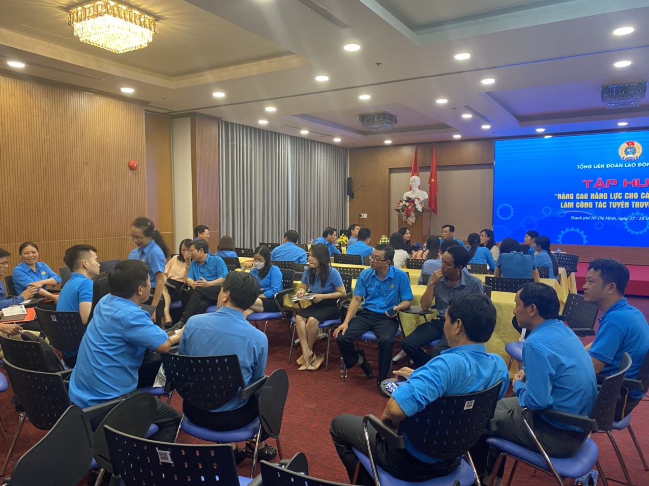 Trong 2 ngày 27-28/10, tại Văn phòng B Nhà khách Tổng Liên đoàn (85-87 Cách mạng Tháng 8-TP Hồ Chí Minh), Tổng LĐLĐ Việt Nam tổ chức Hội nghị tập huấn nâng cao năng lực cho đội ngũ cán bộ công đoàn làm công tác tuyên truyền vận động.
