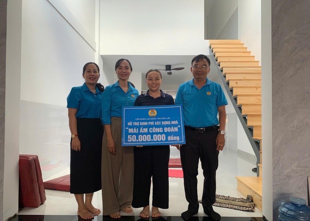 Tại xã Ea Kly, LĐLĐ tỉnh đã trao hỗ trợ kinh phí 50 triệu đồng cho đoàn viên Đỗ Thị Ngân, là mẹ đơn thân. Trước đây, 2 mẹ con phải tá túc ở khu nội trú của trường THCS Nguyễn Thị Minh Khai, rất khó khăn trong sinh hoạt. Được sự hỗ trợ của LĐLĐ tỉnh và người thân, cộng với tích cóp của bản thân, chị Ngân đã mạnh dạn xây dựng ngôi nhà 37m2 với kinh phí gần 300 triệu đồng.